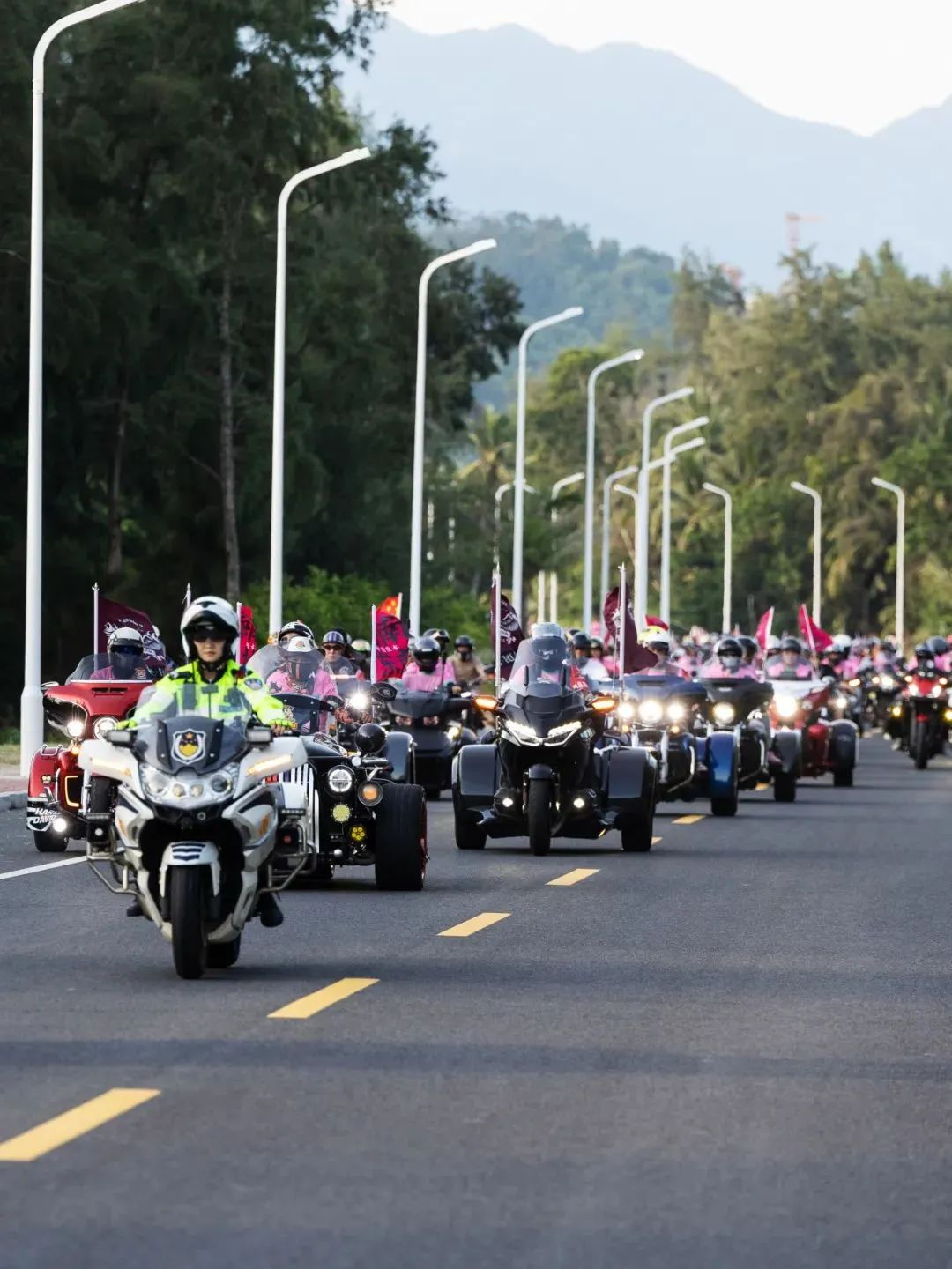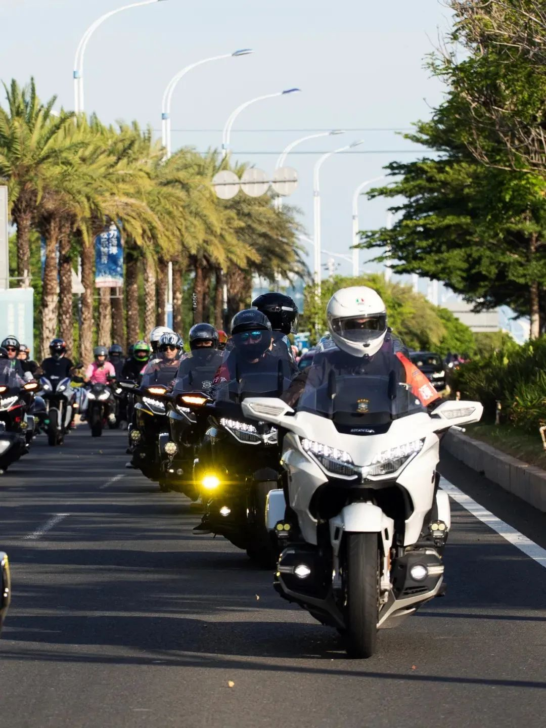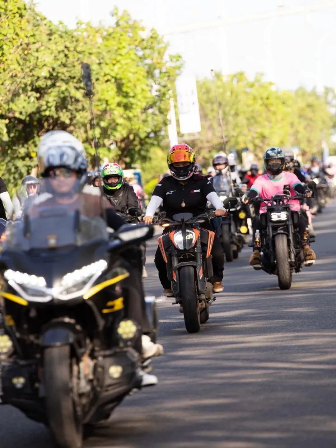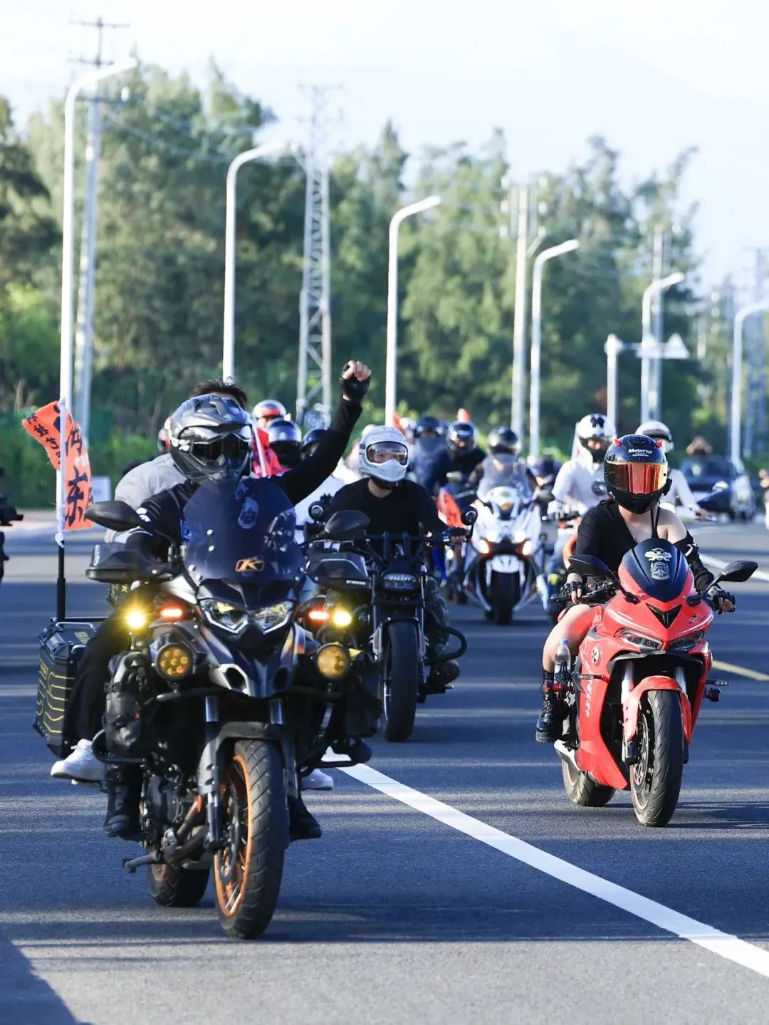 部队中,有复古风格的美式巡航,也有未来感十足的电动机车,规整编列中透出不羁的情绪。车手们身着定制骑行服,风格各异:有的戴着全盔,有的佩带墨镜,像是从电影画面中驶出的人物。他们不说话,但每一次油门轰响,都在与街边观众对话。