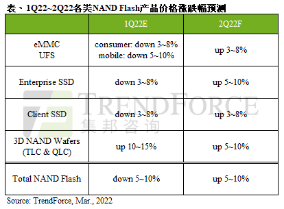 3)俄乌抵触与高通胀夹攻,预估第二季DRAM价格续跌0~5%