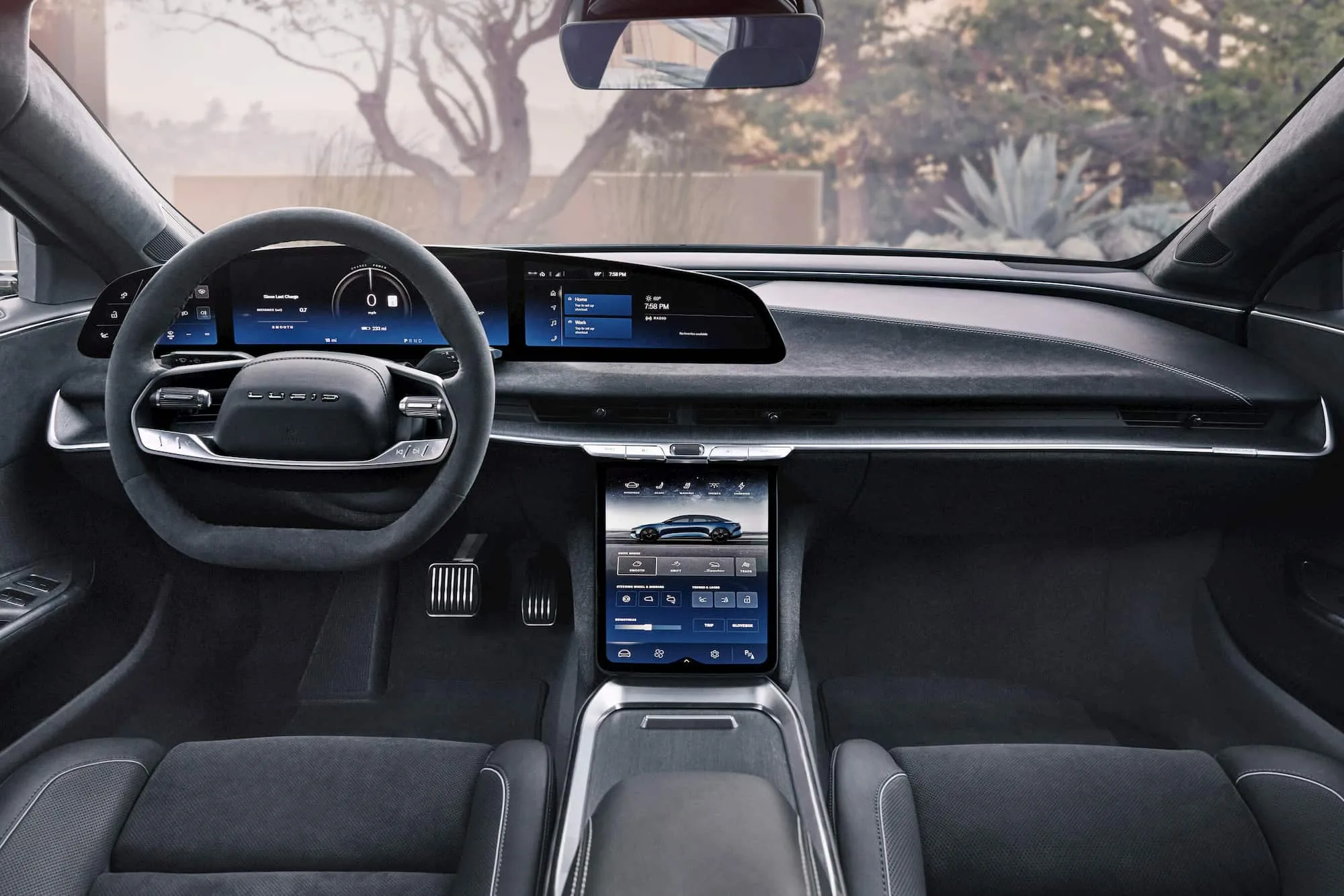 - 高雅直观的 Lucid UX 与 34 英寸起浮玻璃驾驭舱。